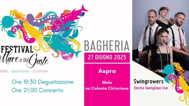 Si svolgerà al molo ex colonia Cirincione di Aspra, il 27 giugno 2025, una tappa del “Festival del Mare e del Gusto”. La manifestazione – organizzata dal Galp La Costa d’Oro, 4GALP, FEAMPA (Fondo Europeo per gli Affari Marittimi, la Pesca e l’Acquacoltura) con la collaborazione di Duca di Salaparuta ed Euroform – prevede l’unione delle eccellenze culinarie del territorio con l’energia della musica. La serata avrà inizio alle ore 19:30 con il cooking show dello chef Francesco Lelio, che delizierà il pubblico con una degustazione a base di pescato locale. Il culmine della serata sarà il concerto live degli Swingrowers, che a partire dalle ore 21 faranno vibrare il Molo con il loro inconfondibile stile electro swing/jazz.