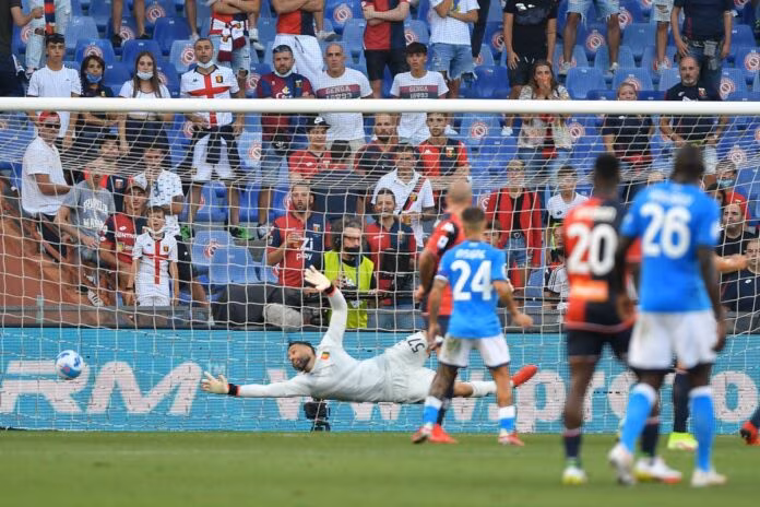 GENOVA (ITALPRESS) – Il Napoli bissa il successo della scorsa settima ottenuto contro il Venezia superando il Genoa al ‘Ferraris’ per 2-1. In mezzo il momentaneo pari di Cambiaso al primo gol in Serie A. Al 14′ prima occasione per i partenopei: Elmas serve in profondità Insigne che calcia, sfera deviata Vanheusden e palo esterno che mette paura a Sirigu. La risposta rossoblù al 22′ con un violento destro di Ghiglione, nessun problema per Meret. Alla mezz’ora la squadra di Spalletti ci riprova col suo capitano, ma l’estremo difensore del Genoa è attento e para in tuffo. Il match si sblocca al minuto 39′: Fabian Ruiz riceve al limite, supera un avversario e calcia di sinistro dal limite dell’area, Sirigu non può nulla. Nella ripresa padroni di casa subito all’attacco e creano una tripla occasione: in successione Ghiglione due volte e poi Rovella. Nemmeno il tempo di sistemarsi e la squadra di Ballardini va in gol con Pandev, abile a sfruttare un’uscita maldestra di Meret, ma l’arbitro annulla per fallo di Buksa sul portiere azzurro. Era il preludio del gol del pari rossoblù che arriva al 69′: cross dalla destra di Ghiglione, dall’altra parte arriva Cambiaso che con un tiro al volo buca il portiere del Napoli. Il gol decisivo della gara arriva, però, all’84’: punizione laterale calciata da Mario Rui, si inserisce Petagna che di testa mette in rete. Vince il Napoli: azzurri a punteggio pieno, Genoa a zero punti.