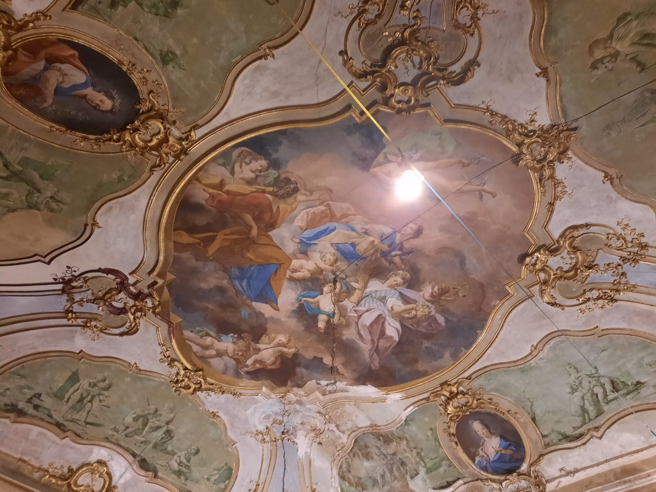 E nei saloni a seguire sempre il rimando al mito, con la rappresentazione della cornucopia e del mito di Demetra.