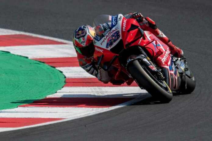 MISANO ADRIATICO (ITALPRESS) – Jack Miller fa un altro sport. Si può riassumere così la seconda sessione di prove libere del GP del Made in Italy e dell’Emilia Romagna sul circuito “Marco Simoncelli” di Misano Adriatico. L’australiano della Ducati, su una pista inizialmente bagnata andata via via ad asciugarsi, ha staccato un vero e proprio “tempone” con 1’41″305. Alle sue spalle, distanziato di ben 9 decimi, il francese della Ducati Pramac Johann Zarco (il più veloce al mattino, sempre sul bagnato, davanti a Marquez). Terzo posto per Aleix Espargaro che ha sfruttato l’ultissima parte di sessione oramai completamente asciutta, girando con la sua Aprilia in 1’42″291. Bene le KTM con Lecuona quarto e Oliveira quinto. Alle loro spalle, in quello che sarà l’ultimo GP italiano di Valentino Rossi (purtroppo a fondo gruppo e in evidente difficoltà), ben quattro centauri italiani: Marini sesto su Ducati, Savadori settimo su Aprilia, Bagnaia ottavo su Ducati e Petrucci nono su KTM. La Top ten è completata dallo spagnolo Martin su Ducati. Fuori dai Top Ten sia Marc Marquez, 14esimo, che il leader del Mondiale, il francese della Yamaha Fabio Quartararo, addirittura 16esimo.